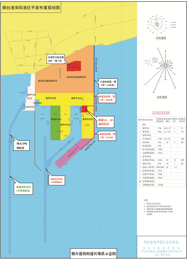 煙臺港海陽港區地處山東半島中部南端沿海,屬于我國沿海主要港口和國家綜合運輸體系的重要樞紐,整個港區劃分為東、中、西三個港池和東、中、西三個突堤,規劃碼頭岸線總長15.5公里,陸域總面積29平方公里,可形成各類碼頭泊位55個,年綜合通過能力6500萬噸、300萬標準箱、40萬輛車次、10萬人次。項目總投資157億元,一期工程已經完成投資5.97億元,二期工程計劃完成投資31.67億元。